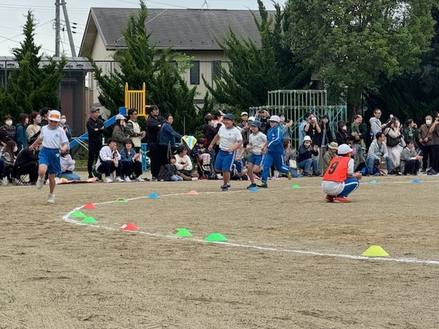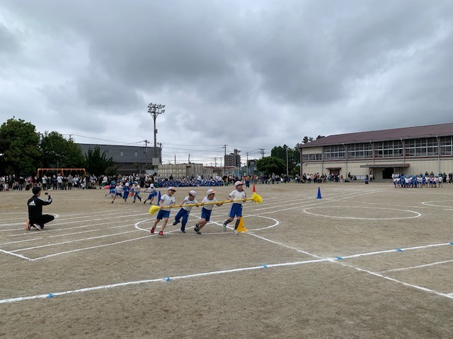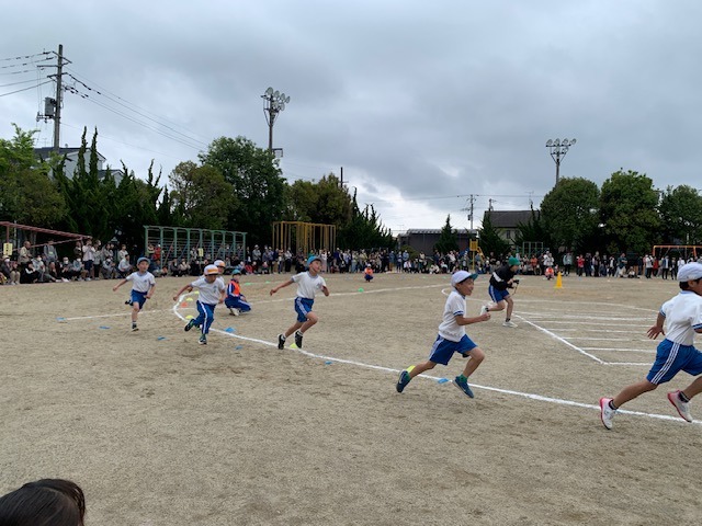 5年生最初の競技は、徒競走です。1年生の頃と比べると、走る距離が長くなったなあと感じます。どんな子も、ゴール目指して一生懸命走り抜けました。